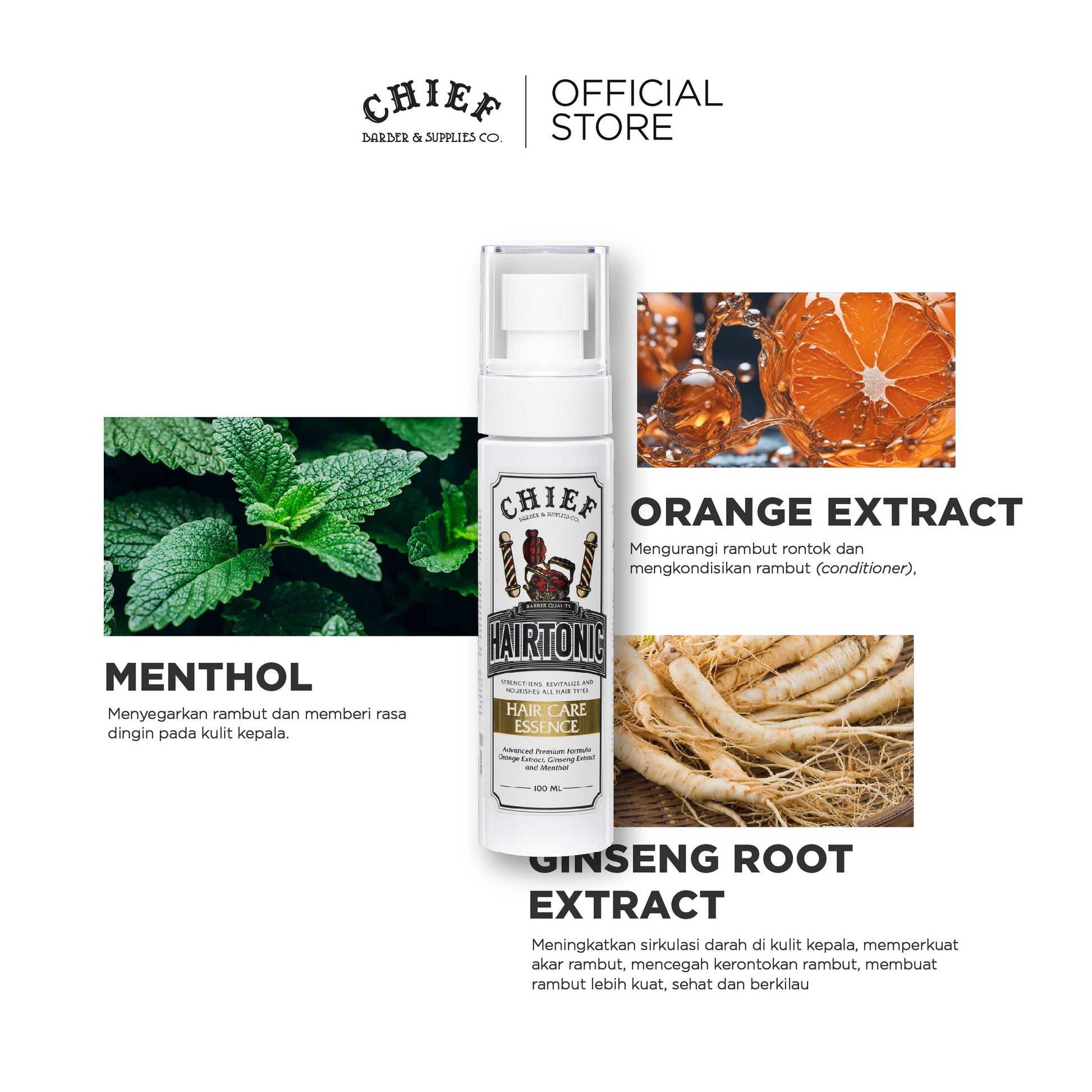Chief Hairtonic adalah produk perawatan rambut pria berkualitas dari Chief Barbershop yang diformulasikan untuk menyehatkan rambut dan memberikan wangi pada rambut.
