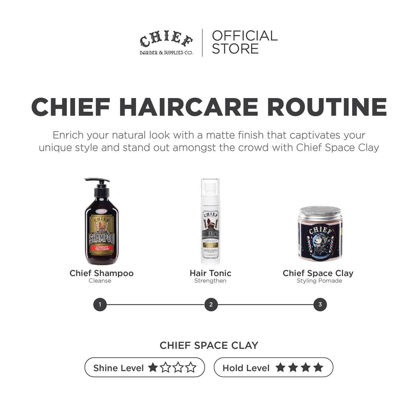 Chief Clay Pomade adalah pomade berbahan dasar clay yang sangat tepat untuk aktivitas dalam maupun luar ruang. Memiliki tingkat kekuatan yang tinggi untuk tampilan kasual.